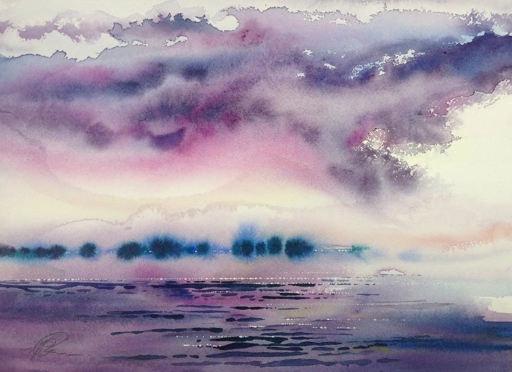 Violet Moods ‐ Watercolor ‐ Paper ‐ 11” x 14”