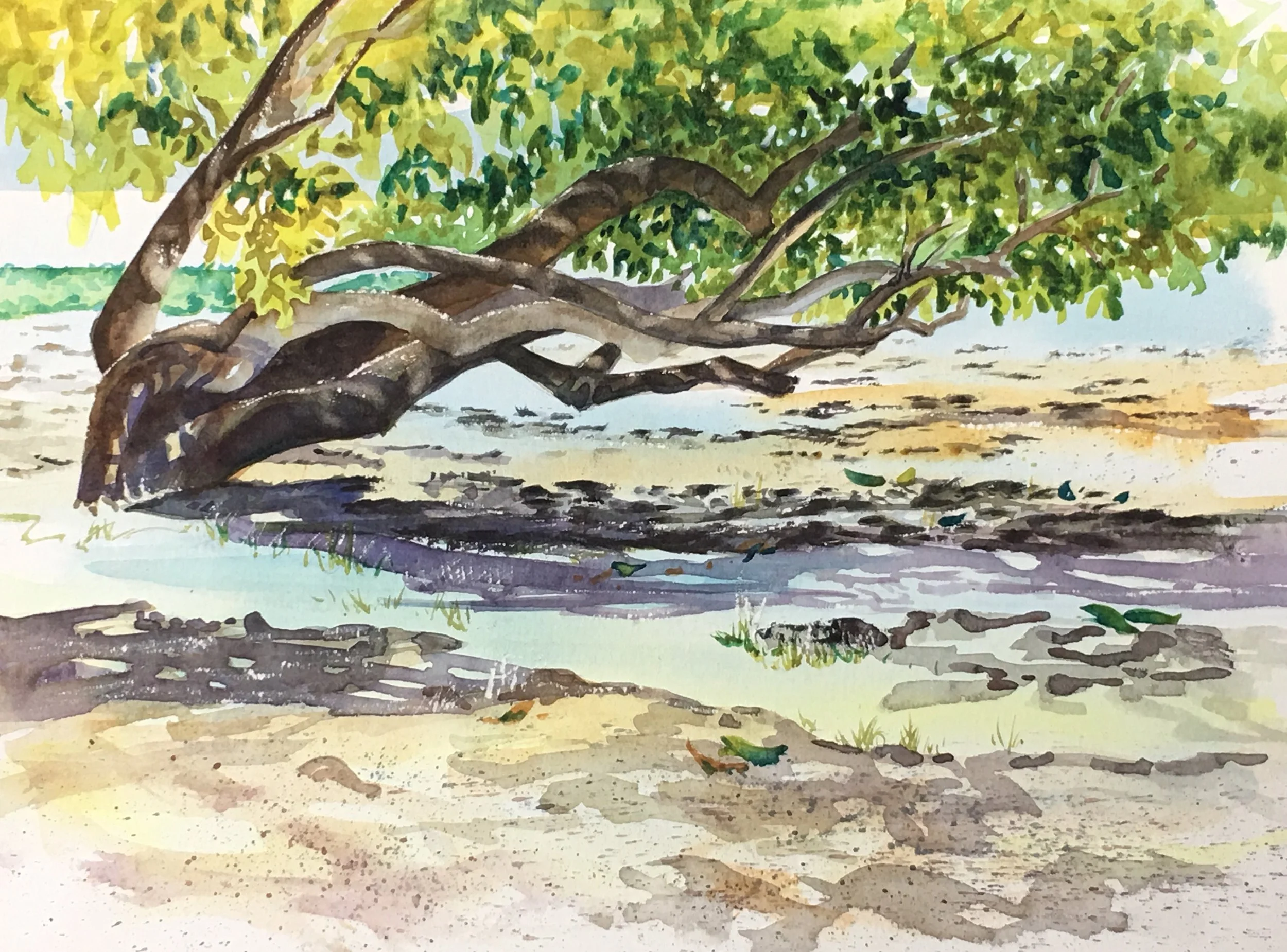 Free Run! Beach walk ‐ Watercolor ‐ Paper ‐ 14” x 22” x 1 1/4